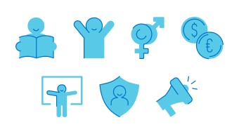 7つの活動分野(教育・子どもの成長・性の知識・生計向上・子どもの参加・子どもの保護・緊急支援)とその他の活動についてお伝えします。