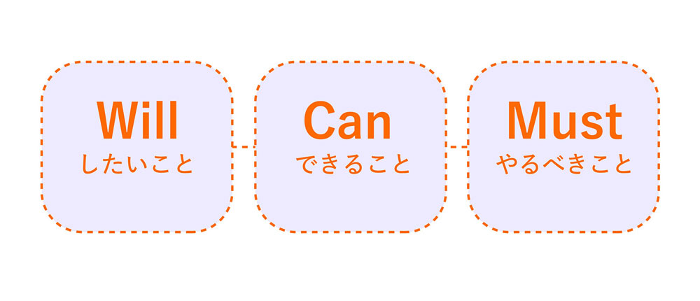 やりたいこと(Will)が分からない状態であれば、まずはCanとMustから試してみてください。