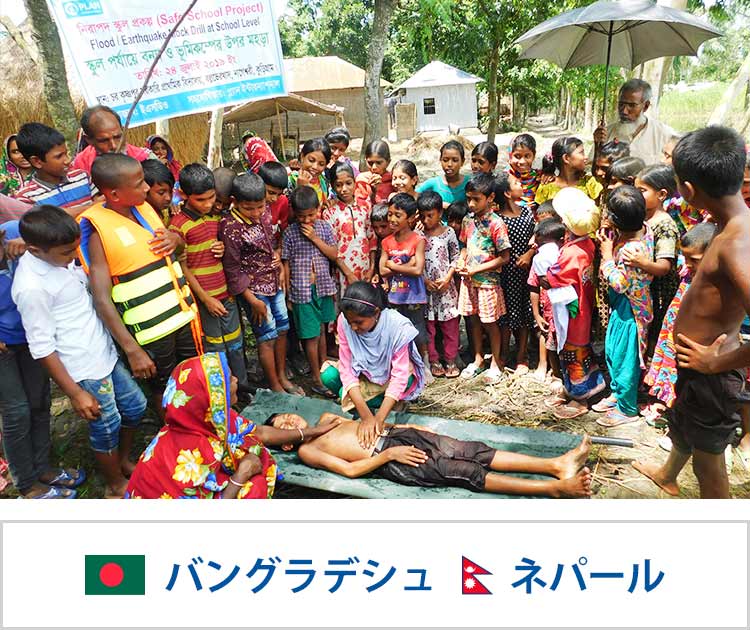 このプロジェクトでは、アジアの中でも特に災害リスクの高いバングラデシュとネパールの2カ国において、行政や地域の人々と協力しながら学校を中心とした防災活動を推し進め、子どもや若者たちがジェンダーの違いに関わらず、災害や災害に起因するさまざまな脅威から身を守るスキルを高められるよう支援します。