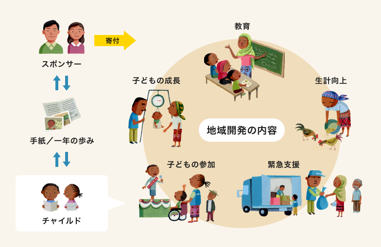 - 定期的にお送りする「一年の歩み」で、チャイルドと地域の成長を見守っていただくことができます。