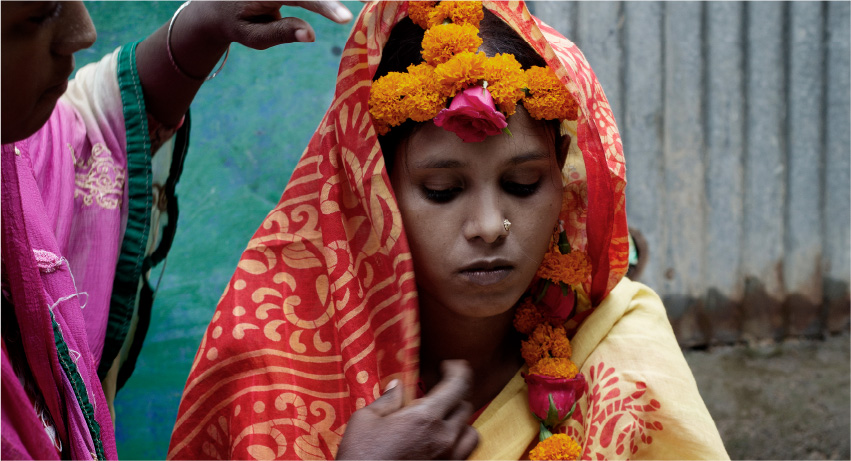 18歳未満の幼い年齢で結婚(事実婚を含む)することで、「児童婚」とも言われる子どもの権利の侵害です。南アジアやサハラ以南のアフリカなどの途上国に特に多く、中には10歳前後で父親ほど年齢の離れた男性と結婚させられることも。