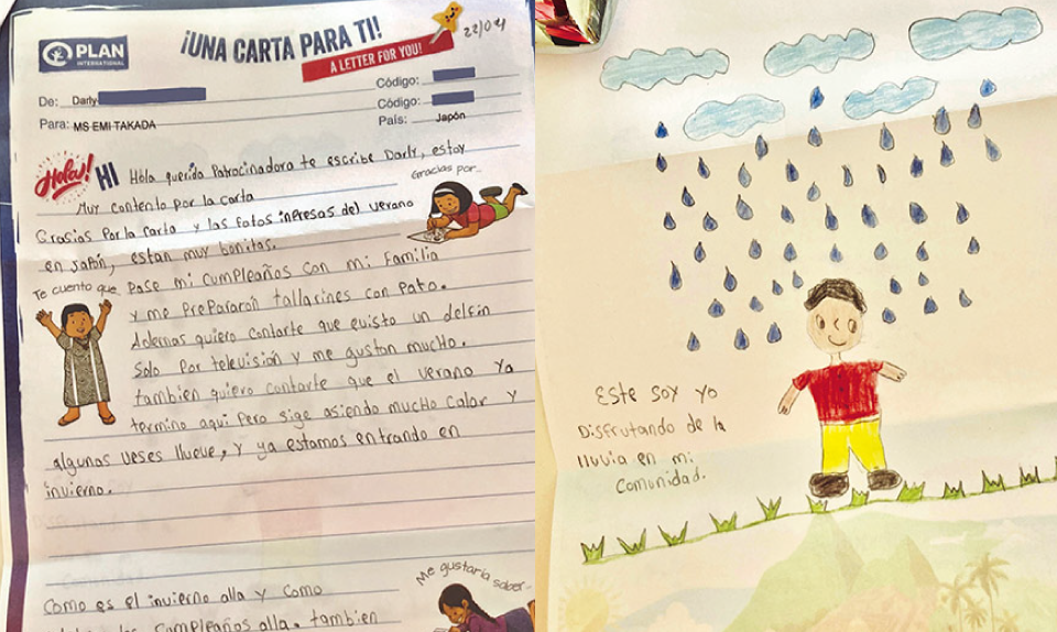 宛名も私の名前だけでなく「ディアスポンサーファミリー」となっていて、特別な気持ちになりました。彼女との交流は私の励みになっています。