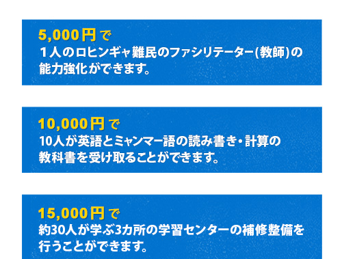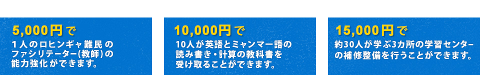 *上記は例です。いただいたご寄付は、他の取り組みや管理費にも充てさせていただきます