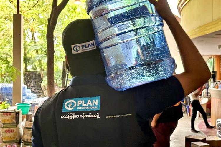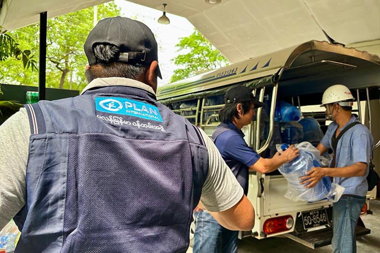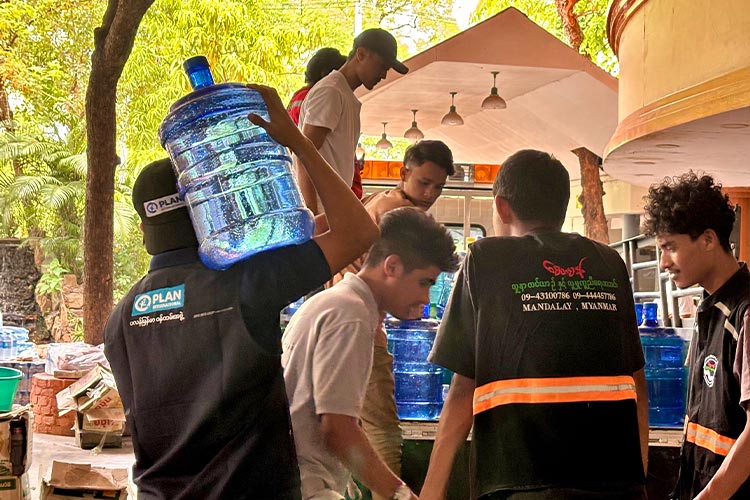 4月8日、プラン・インターナショナルはパートナー団体と協力し、20リットル入りの飲料水300本を緊急配布しました。被害が深刻な地域へできるだけ早く必要な支援を届けるため、パートナー団体との連携をさらに強化しています。