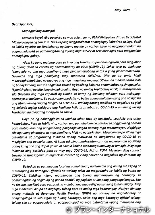 新型コロナウイルス感染症(COVID-19)フィリピン マスバテ活動地域 コミュニティ・ボランティアの情報 / プラン・インターナショナル