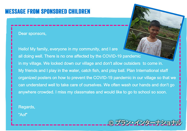 - ※「プラン・スポンサーシップ」でプラン・インターナショナルとともに活動し、村を代表してその成果を私たちに伝えてくれる子どもたちを“チャイルド”と呼んでいます。スポンサーになると、チャイルドとは手紙などで交流できます。