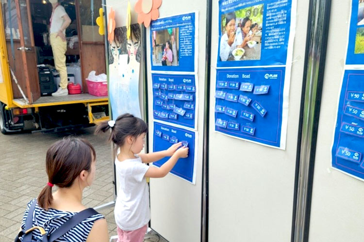 オムライスの注文を受けると精算をしていただき、出来上がるまでの約3分の間にプロジェクトの説明をして、応援したいと思うプロジェクトを選んでいただきました。プラン・インターナショナルを知らない方がほとんどでしたが、オムライスが出来上がっても説明を聞いてくださったり、どのプロジェクトにしようか悩んでいる方もいらして、みんなで考えながら時間を共有することができました。
