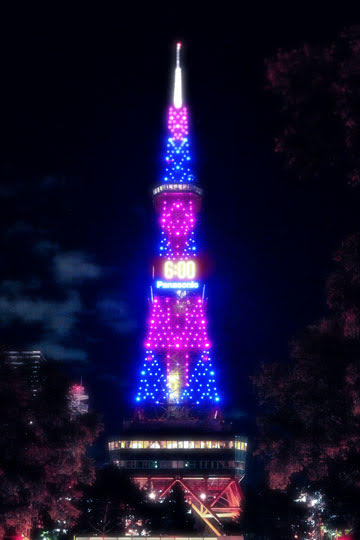 さっぽろテレビ塔のイルミネーション点灯!18時からの1時間、ピンクとブルーに美しく彩られたさっぽろテレビ塔が札幌で国際ガールズ・デーの周知に一役買いました。