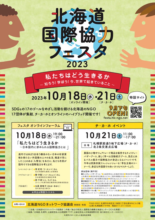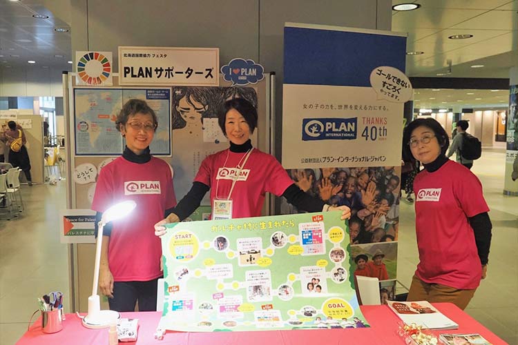 PLANサポーターズは10月21日(土)に札幌駅前通地下広場で開催された「北海道国際協力フェスタ2023」に出展しました。道内のNGOや市民団体が集まる同フェスタには2014年から毎回参加しています。コロナ前に比べ出展団体は6割に減りましたが、その分ブースが広めに確保され、来場者とゆっくり話がしやすい環境でした。