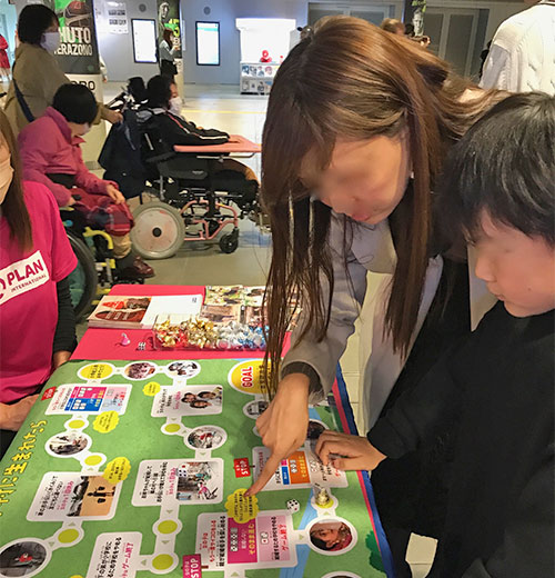 皆さんゲームに集中してくれるため、すごろくの要所要所に用意した<女の子の問題>の説明を挟むのが難しいのですが、「早くサイコロ振りたい」と先を急ぐ小学生のお子さんに、お母さんが「ちょっと待って。今いるここになんて書いてある?よく読んでみようか」と素晴らしいサポート!こちらが説明せずとも、じっくりとゲームを進めてくださいました。