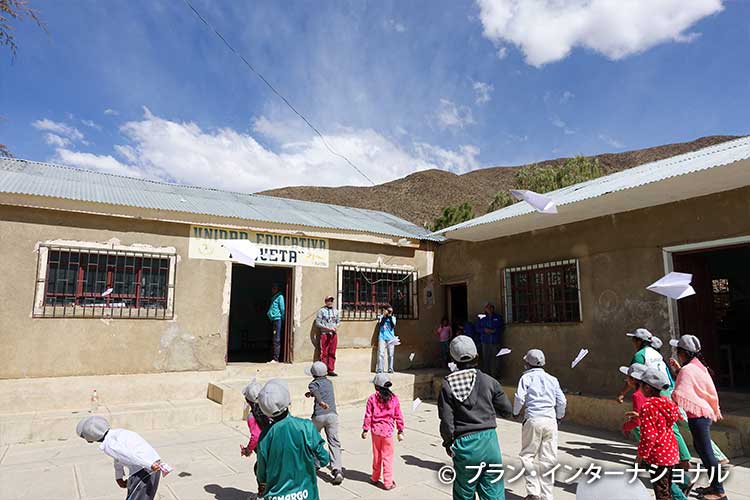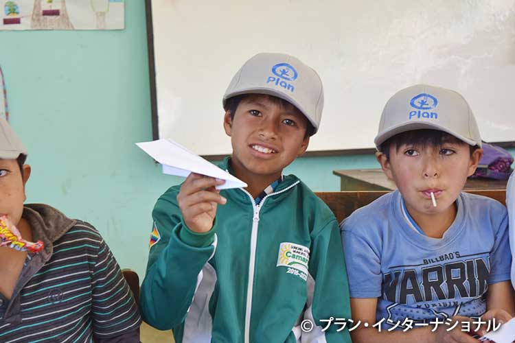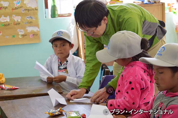 プランがタリハ近郊で広く活動していることを知り、また、コミュニティでは“普通に”受け入れられていて、プランが、および自分の寄付が、役に立っていると感じました。職員の方々は先進国基準で働いていることがわかり、プラン全体を信頼できるようになりました。コミュニティには中学校がないため、よく勉強した子どもたちは進学で村を離れてしまいます。 コミュニティの小学校でディルベル君と対面。児童全員で歓迎の踊りを披露してくれました。その後、折紙で紙飛行機を一緒に折り、皆で飛ばして遊んだことは良い思い出です。学校では、彼らの言語であるケチュア語の授業もあり、コミュニティが、子どもたちが通常の勉強以外にも、自分たちの文化を学ぶことに力を入れているのが分かりました。
