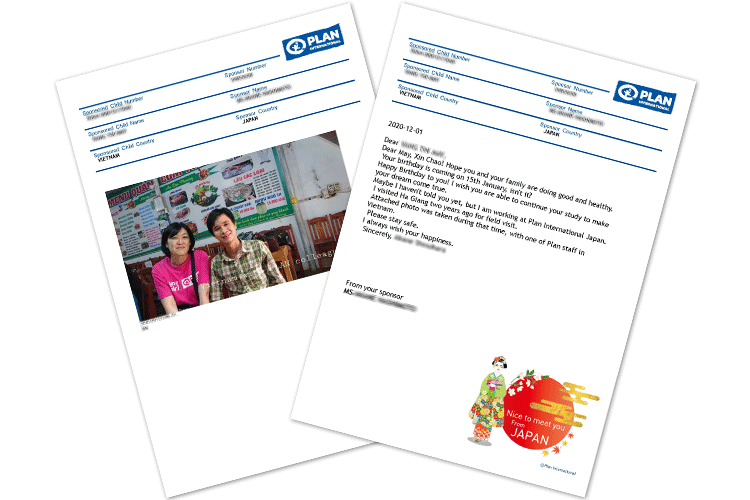 そして彼らはプラン・インターナショナルが活動する地域の「窓」となり、手紙を通じて活動の成果をあなたに伝えてくれます。